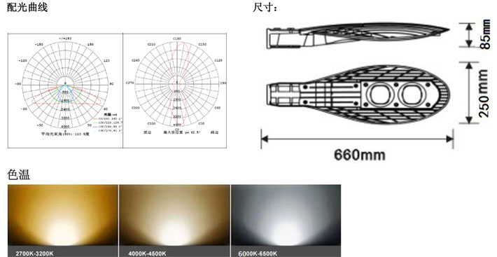 2.光學(xué)玻璃透鏡,可靠的二次光學(xué)設(shè)計(jì)及的角度定位,提高光照效果;有TYPEⅡ TYPEⅢ等多種配光方式,適用于二車道三車道四車道等多種路面;
