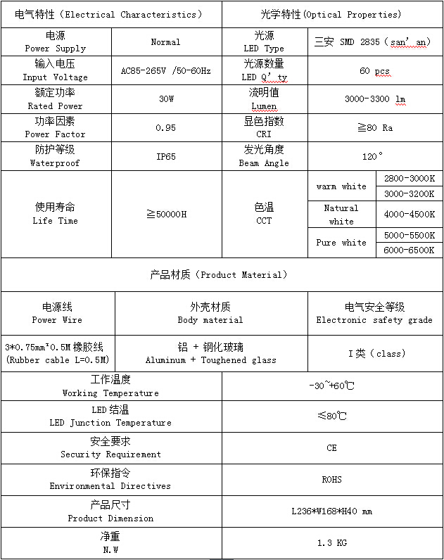 您的位置:首頁(yè) > 產(chǎn)品展示 > LED照明燈具 > LED泛光燈LED投光燈 > Led泛光燈30W